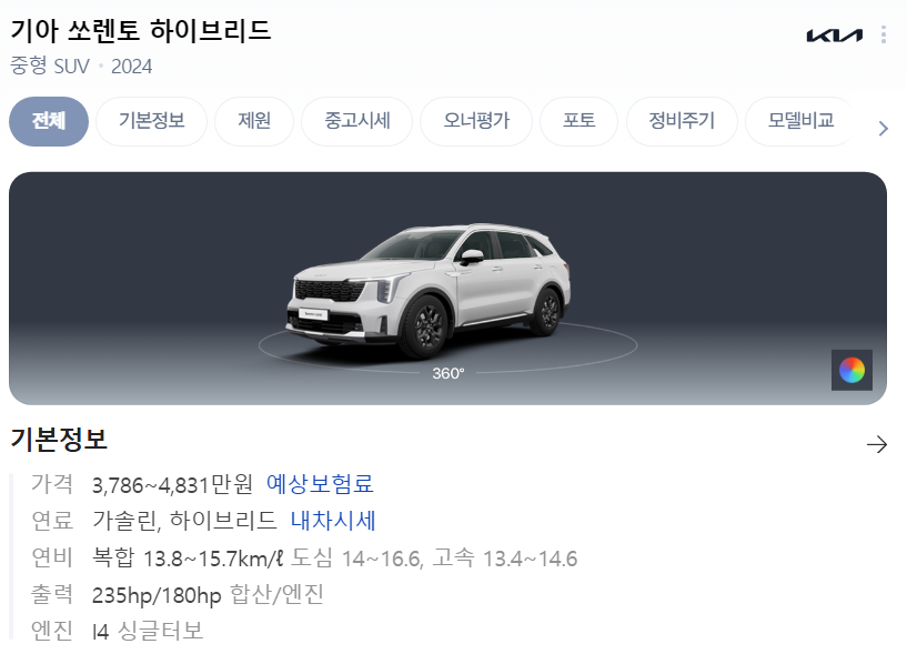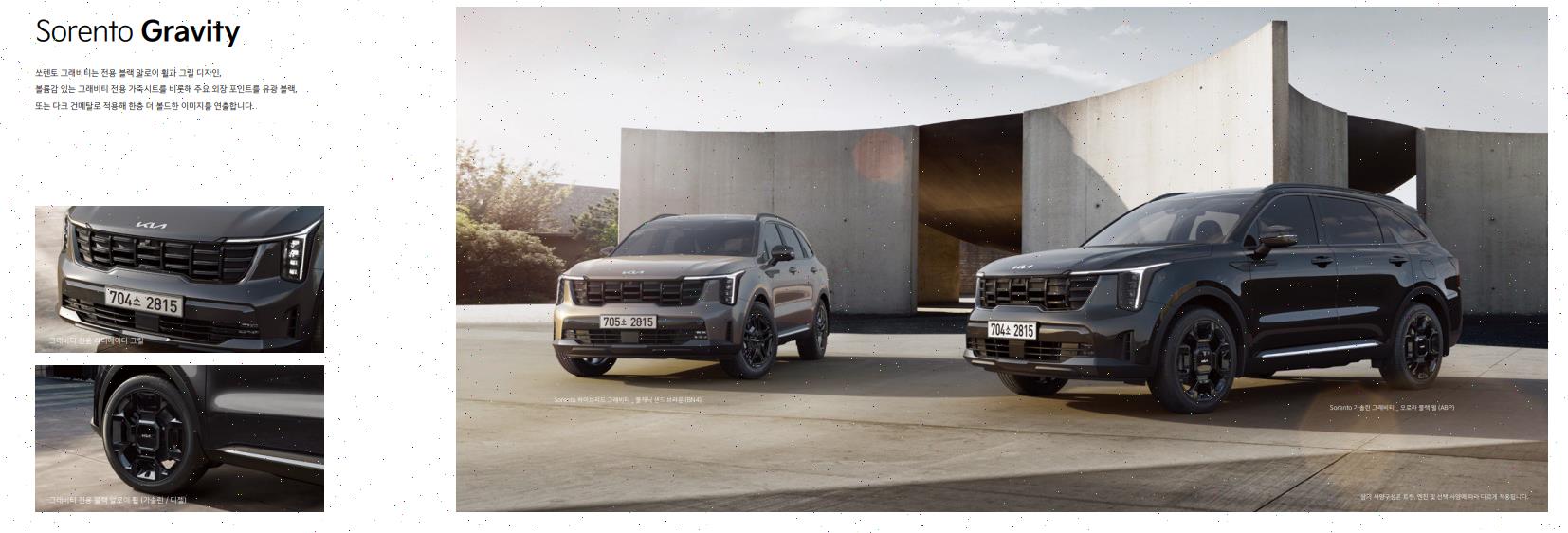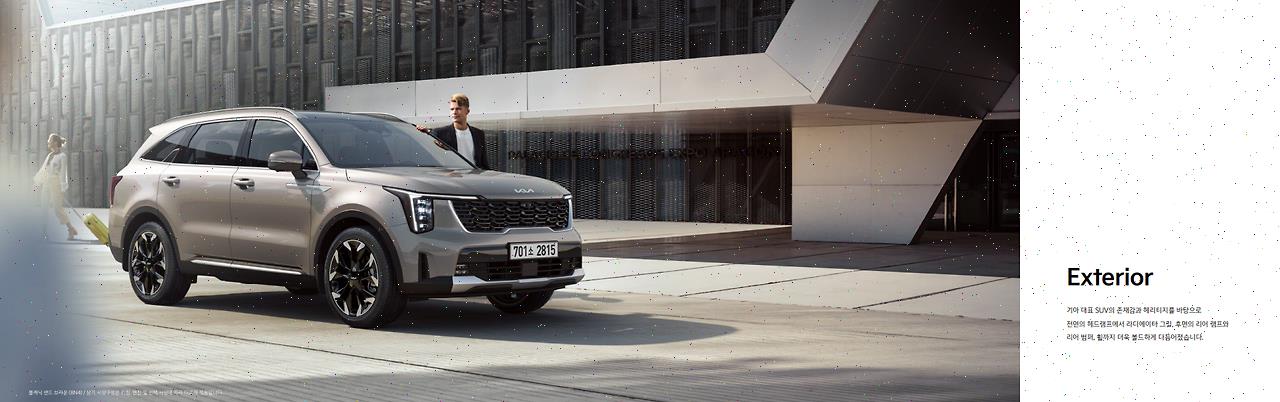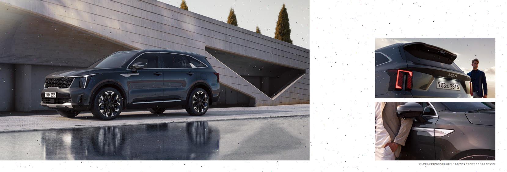 2024 쏘렌토 하이브리드는 세련된 디자인과 넉넉한 내부 공간이 조화를 이루는 매력적인 SUV입니다. 외부에서 바라보면, 강렬한 프런트 그릴과 LED 헤드램프가 시선을 사로잡으며, 우아한 라인과 곡선은 역동적인 이미지를 강조합니다. SUV의 강인함과 함께 현대적인 감각이 느껴지는 외관은 도심과 아웃도어 모두에서 잘 어울립니다.