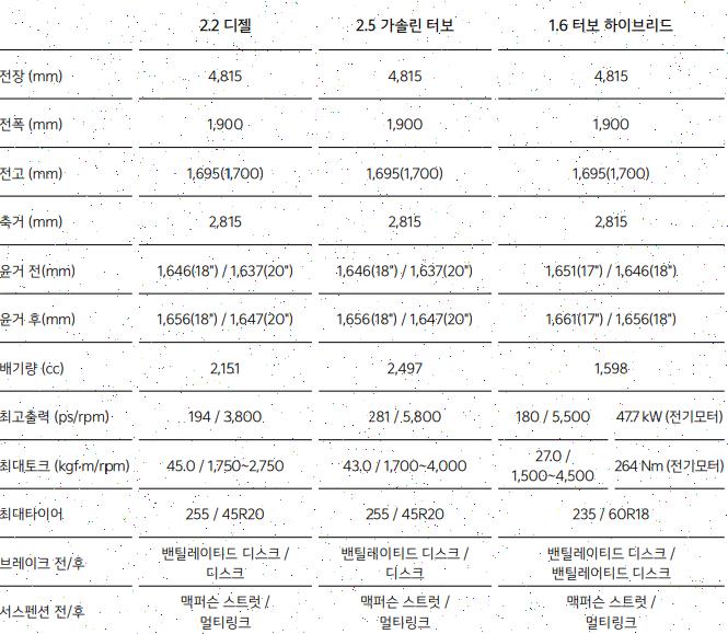 | 엔진 유형 | 2.5L 가솔린 엔진 |