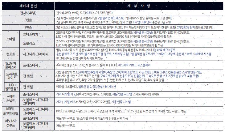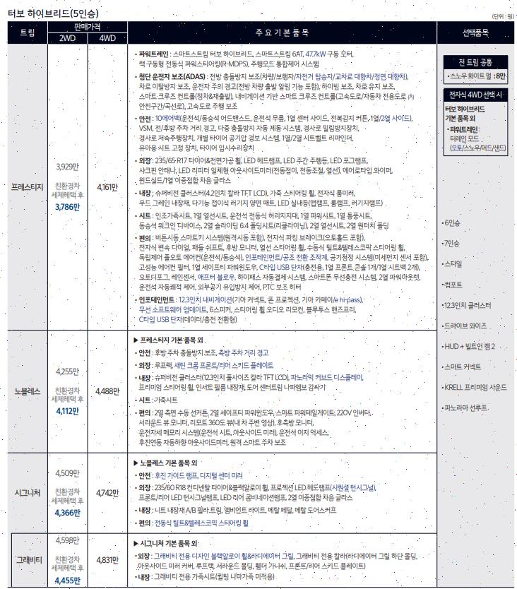 | 프레스티지 | 3,786 | 기본 안전 및 편의 기능 |